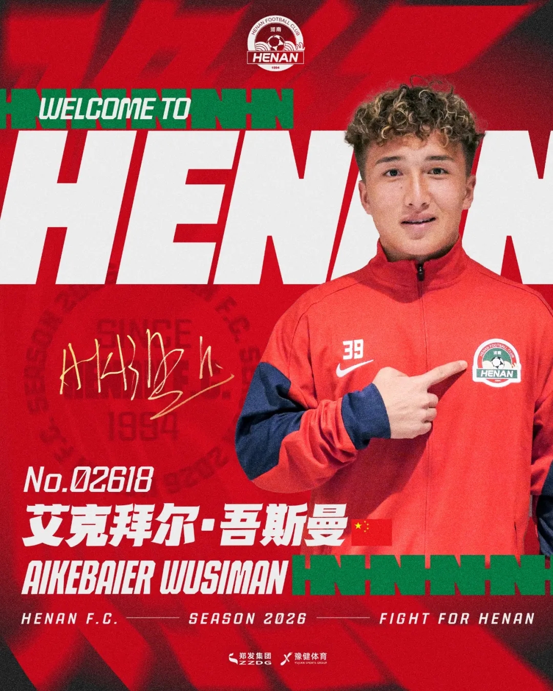 欢迎阿卜杜肉苏力正式加盟河南足球俱乐部,期待你与全体将士并肩作战,继续为河南足球拼下更多荣耀!
